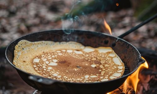 - Steg små pandekager på en pande (gerne en, der er lavet til formålet med langt skaft) over bål eller grill.