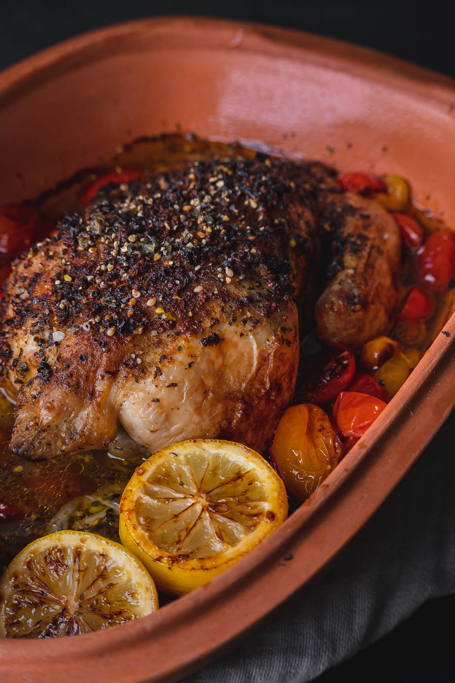 En hel kylling i stegeso eller römertopf er den skønneste måde at tilberede et helt måltid, på en nem og tidsbesparende måde. Kyllingen bliver saftig og mør og tilbehøret fuld af velsmag. Det tager ikke mange minutter at smide maden i stegesoen og ind i ovnen. Så inden du hopper i arbejdstøjet og går i gang med havearbejdet, kan du på 15 min. smide ingredienser i din stegeso, og putte den i ovnen. Så er der skøn mad klar, når havearbejdet er overstået.