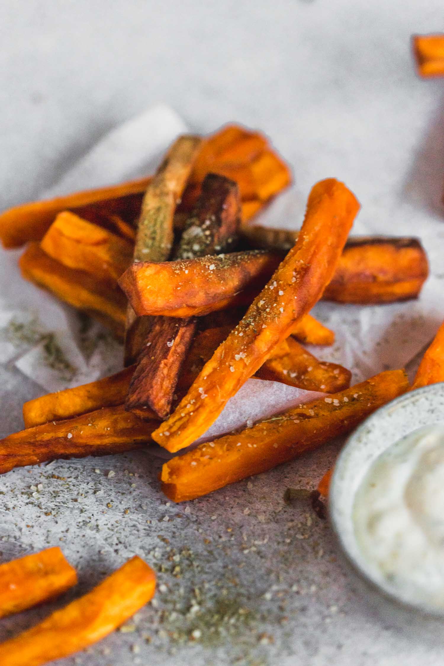 Vores sweet potatoe fries er en sand succes i vores hjem, og vi laver derfor gerne en ekstra stor portion til når børne og børnebørnene kommer på besøg.