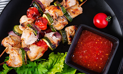 Til dippen blander du mayonnaise og cremefraice med citronskal, lidt saft, timian-citron salt og hvidløg-chili aioli. Det friske fra citronen passer rigtig godt med den søde smag sweet potato har.